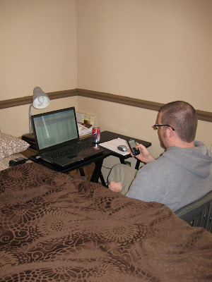 Daddy worked from home some. His makeshift office consisted of two TV trays in our master bedroom. The only place he could work somewhat away from the kids.